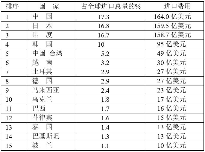 2020年原煤的國際貿易量為12.46億噸。煤進口前15位國家和地區(qū)的數(shù)量約占全球總量的86.3%,為10.75億噸。其中最大的煤進口國是中國,占全球總量的17.3%,其次是日本(16.8%)和印度(16.7%)。