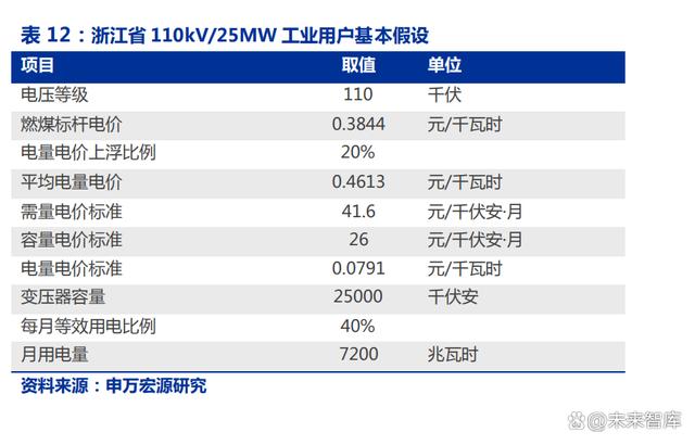 這條政策主要目的是推動(dòng)工商業(yè)企業(yè)進(jìn)行最高負(fù)荷管理,在保持總用電規(guī)模的前提下, 盡量降低最高用電負(fù)荷即可享受相應(yīng)的優(yōu)惠。我們以前文所述浙江 5MW/10MWh 工商業(yè) 儲(chǔ)能為例,假設(shè)公司配儲(chǔ)規(guī)模為變壓器容量的 20%,即變壓器容量為 25MW,假設(shè)接入 110kV 電網(wǎng),每月變壓器等效利用率為 40%,不配儲(chǔ)的情況下最高用電負(fù)荷為變壓器容 量的 70%,在配儲(chǔ)的情況下最多可以將最高用電負(fù)荷降低至變壓器容量的 50%。