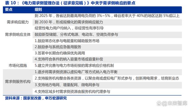 此外,本次政策還提出要鼓勵(lì)需求側(cè)響應(yīng)主體常態(tài)化參與各類電能量、輔助服務(wù)市場(chǎng)、 應(yīng)急備用服務(wù)、容量市場(chǎng)或容量補(bǔ)償?shù)仁袌?chǎng),豐富收益來(lái)源,并建立完善與電力市場(chǎng)銜接 機(jī)制。