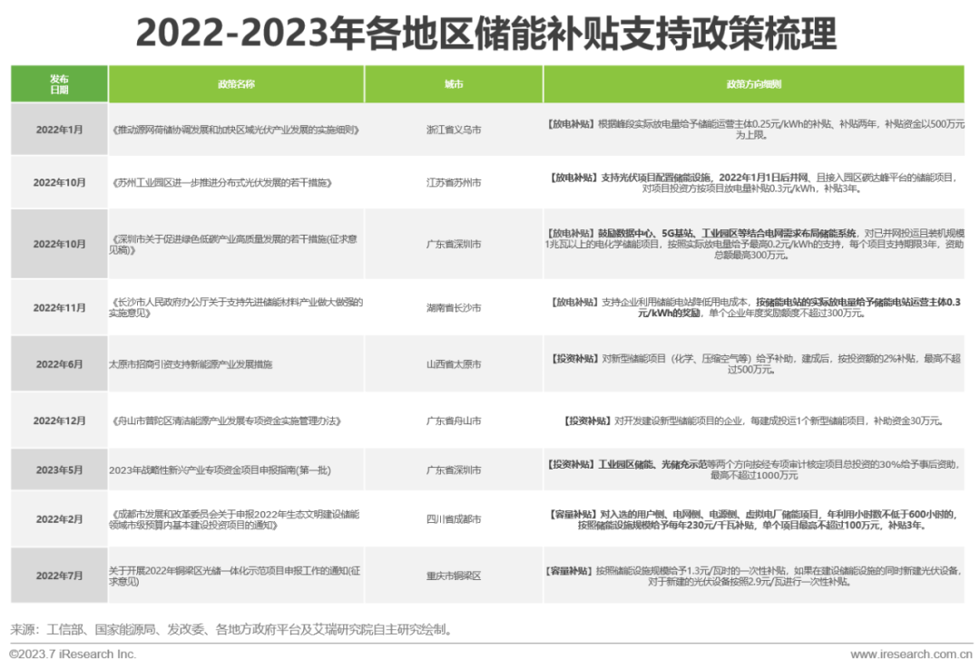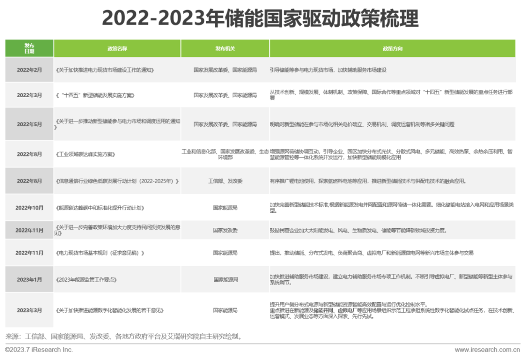2022年能源局和發(fā)改委發(fā)布《“十四五”新型儲能發(fā)展實施方案》,方案中指出探索推廣共享儲能模式。鼓勵新能源電站以自建、租用或購買等形式配置儲能,發(fā)揮儲能“一站多用”的共享作用。