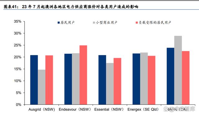 23 上半年澳洲電價(jià)處于環(huán)比上升階段,AER 預(yù)計(jì)下半年起電價(jià)上升 20%~25%。盡管相較 于 22 年,23 年眾多能源問(wèn)題有所緩解,但是長(zhǎng)期來(lái)看,煤炭和天然氣供應(yīng)仍存在不利因 素,例如國(guó)際能源價(jià)格仍然偏高,Liddell 發(fā)電站于 23 年 4 月關(guān)閉導(dǎo)致煤電減少,澳洲國(guó)內(nèi) 天然氣供應(yīng)逐漸減少等。根據(jù) AER 統(tǒng)計(jì),23Q2 昆士蘭州、新南維爾州、維多利亞州、南 澳大利亞州四州的電力現(xiàn)貨價(jià)格分別達(dá)到 139/148/96/136 澳元/MWh,同比-59.6%/-53.9% /-60.2%/-51.4%,雖然有所下降,但是均仍顯著高于前期 21 年全年平均水平(72.63 澳元 /MWh)。由于通脹、俄烏沖突和電廠(chǎng)老化造成的批發(fā)價(jià)格上升,下半年電價(jià)或仍處于上升 通道。根據(jù) AER,23 年 7 月 1 日起,電價(jià)預(yù)計(jì)將有同比 20%~25%的漲幅,主要影響對(duì)象 是家庭用戶(hù)和小商販,或?qū)⒅苯哟碳ぜ彝?chǔ)能安裝需求。