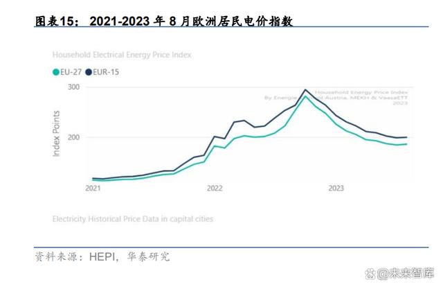 同電價(jià)歷史時(shí)期戶(hù)儲(chǔ)安裝量仍維持高速增長(zhǎng)。根據(jù) HEPI,2023 年 8 月歐洲 27 國(guó)電價(jià)指數(shù) 185.80/氣價(jià)指數(shù) 166.52,與 2022 年年初水平接近,高于 2021 年及之前的水平。根據(jù) Solar power Europe 歷史數(shù)據(jù),2021 年歐洲戶(hù)儲(chǔ)新增戶(hù)儲(chǔ)裝機(jī)規(guī)模 2.294GWh,同增 106.9%。 當(dāng)前電價(jià)/氣價(jià)雖然較前期高點(diǎn)有下降,但儲(chǔ)能回報(bào)率仍較高,考慮到相較 2021 年,當(dāng)前 產(chǎn)品準(zhǔn)備更為多元,電池等原材料成本開(kāi)始下降,用戶(hù)教育更為充分,歐洲戶(hù)儲(chǔ)仍有較高 增長(zhǎng)動(dòng)力。