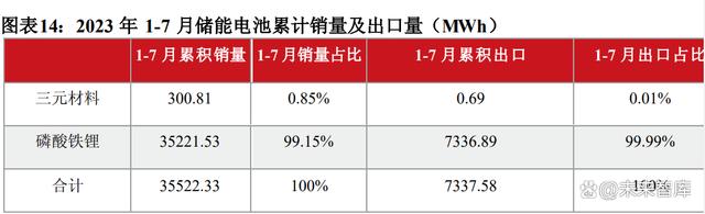 據中國汽車動力電池產業(yè)創(chuàng)新聯(lián)盟統(tǒng)計數(shù)據,2023年1-7月,我國儲能電池累計銷量達35.5GWh。其中磷酸鐵鋰電池累計銷量35.2GWh,我國儲能電池累計出口達7.3GWh,其中磷酸鐵鋰電池累計出口7.3GWh。