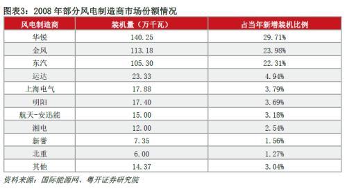 乘著風(fēng)電行業(yè)快速發(fā)展的契機,國內(nèi)領(lǐng)頭風(fēng)電制造商占有巨大市場份額。以彼時的風(fēng)電龍頭企業(yè)華銳科技為例,2008年華銳裝機新增140.25萬千瓦,占據(jù)了當(dāng)年全國新增裝機的29.8%。