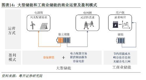 成本下降的同時,大儲和工商業(yè)儲能的盈利模式也日益清晰,大儲可通過共享租賃、現(xiàn)貨市場套利、提供輔助服務(wù)和獲取容量電價盈利,工商業(yè)儲能通過峰谷價差套利以及節(jié)約用能成本盈利。