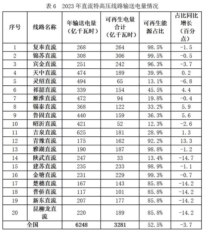 四、直流特高壓線路輸送可再生能源情況
